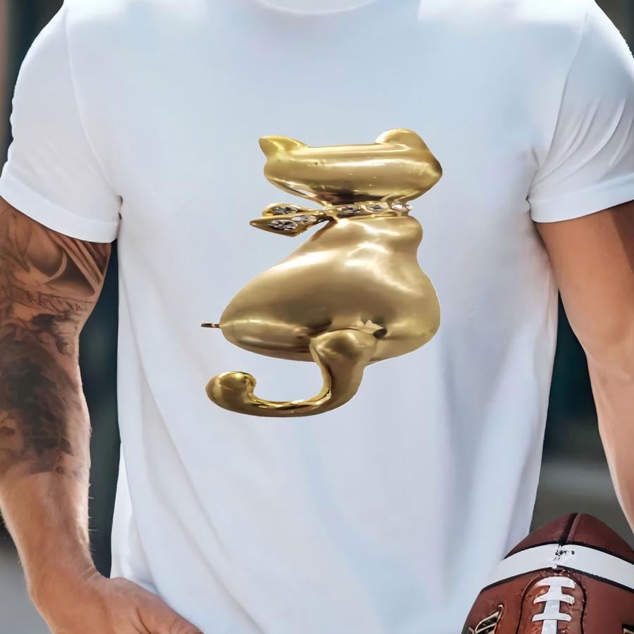 Cat Brooches Set Of Two Gold Tone Pin Back Dangling Tails Rhinestone Embellished T-shirt