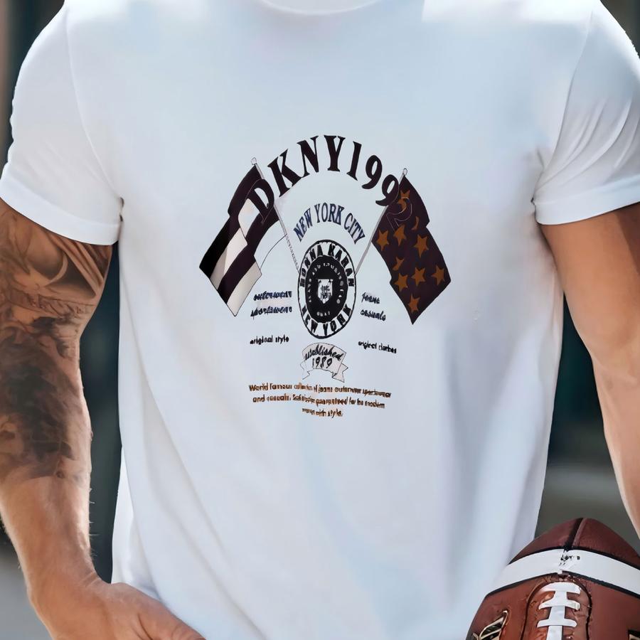 Vintage 90's Dkny White Crew Neck Graphic Logo Sweater Size Xl T-shirt