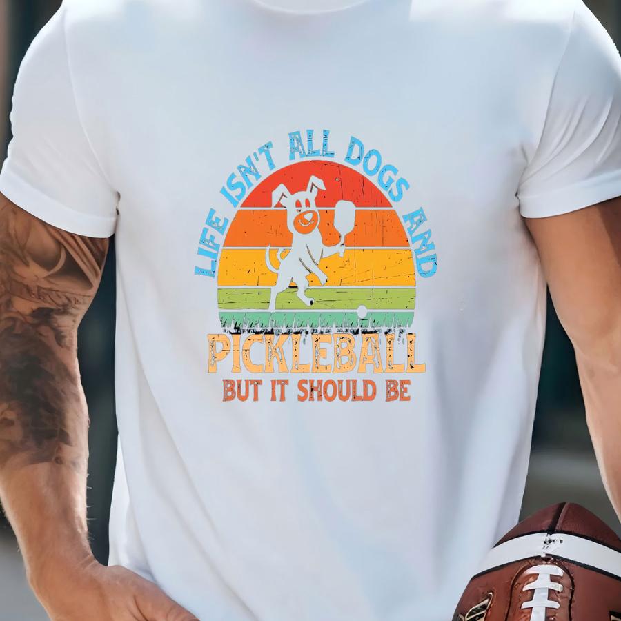 Distressed Pickle Ball Shirt, Pickle Ball Player Shirt, Funny, Life Isn't All Dogs And Pickleball But It Should Be Gift, Dog Lover T-shirt