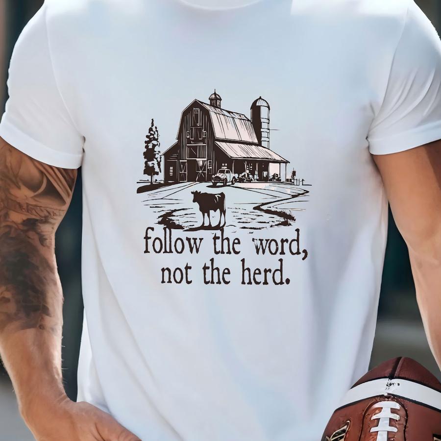Follow The Word Not The Herd Religious Faith Based Bible Verse Country Theme Vintage Style Apparel Christmas Jesus Christian Baptist Church T-shirt