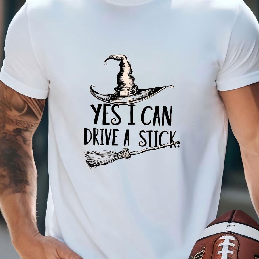 Yes I Can Drive A Stick Halloween Baby Romper, Witch Broomstick Outfit, Spooky Season Fall Vibes Bodysuit, Cute Witchy Baby Halloween Gift T-shirt