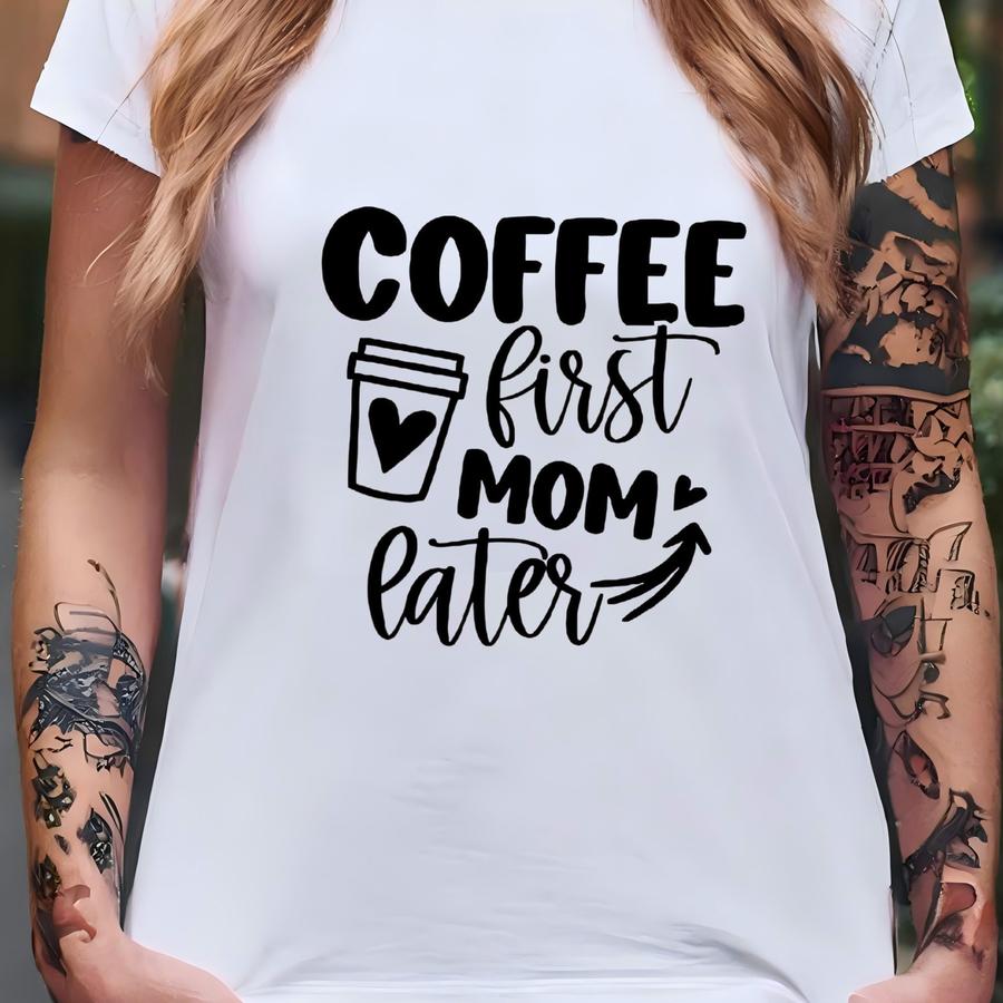 Coffee First Mom Later Shirt, Coffee Lover Mom Shirt, Happy Mother's Day Shirt, Motherhood Shirt, Mother Life Gift, Promoted Mom Shirt T-shirt