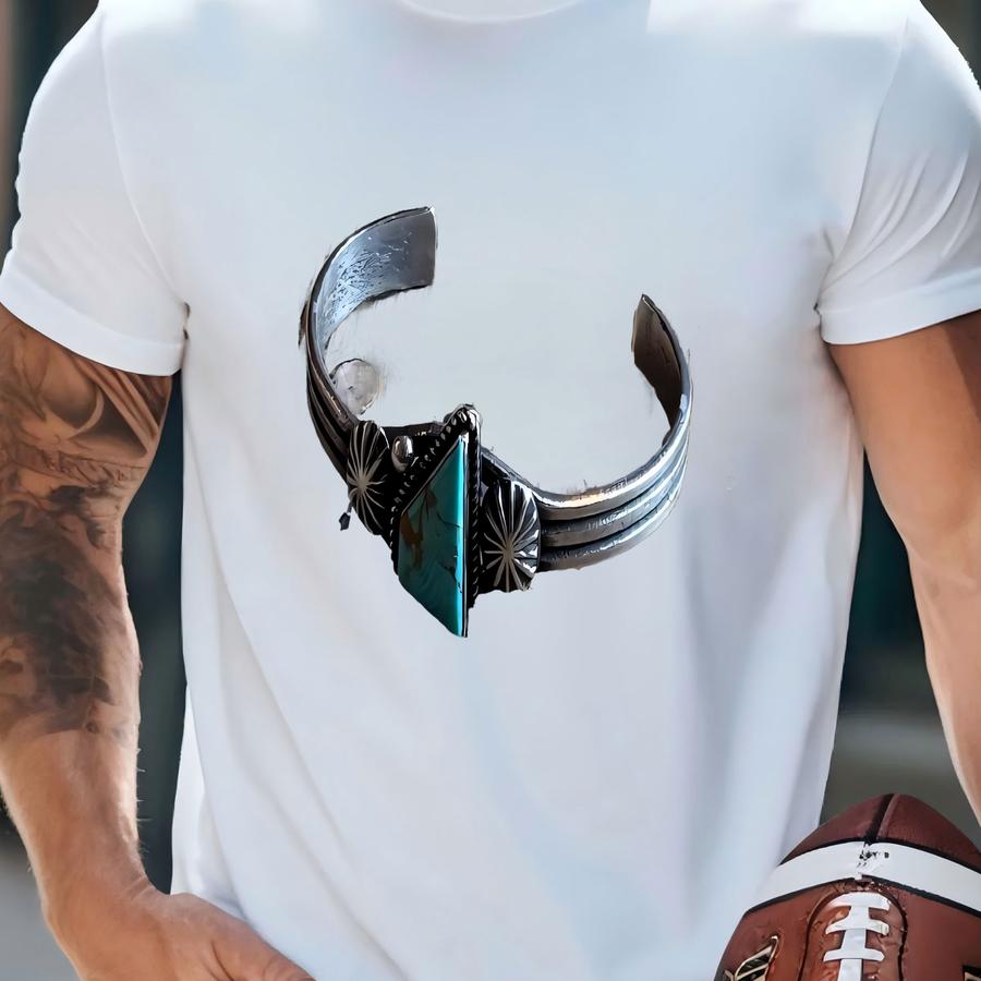 Vintage Navajo Native American Sterling Silver Turquoise Tufa Cast Cuff By Kirk Smith. Handmade In Usa. T-shirt