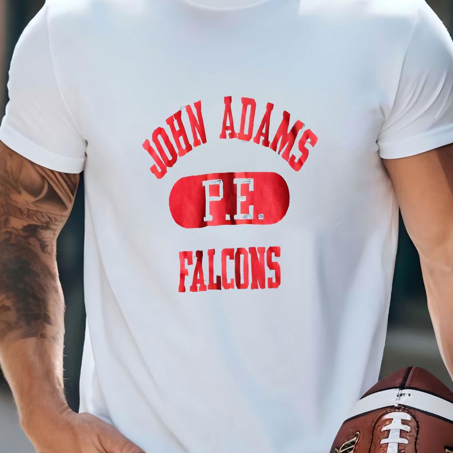 Vintage 1990’s “john Adams Falcons” Graphic Slogan Single Stitch Hoodie. Made In Usa, Size Medium. T-shirt