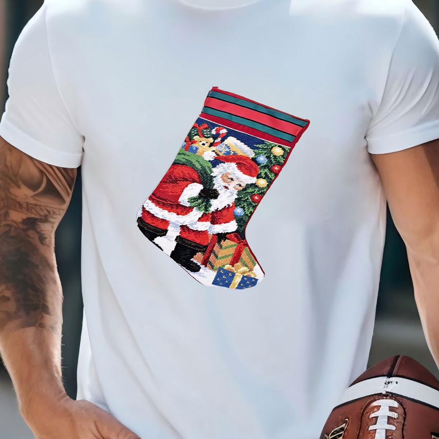Santa Claus Christmas Stocking Y - Christmas Stocking W/ Santa And Presents And Christmas Tree T-shirt