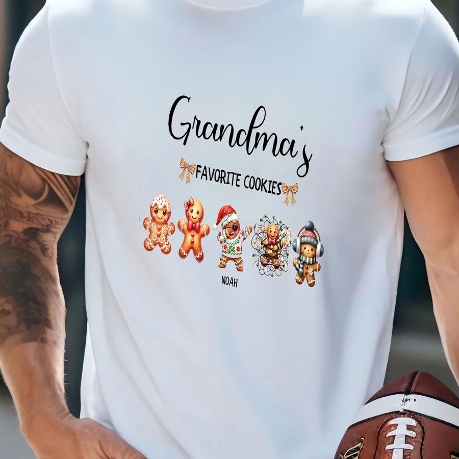 Comfort Color® Grandma’s Favorite Cookies Shirt, Personalized Gingerbread Christmas Hoodie With Names, Christmas Gift For Grandma T-shirt