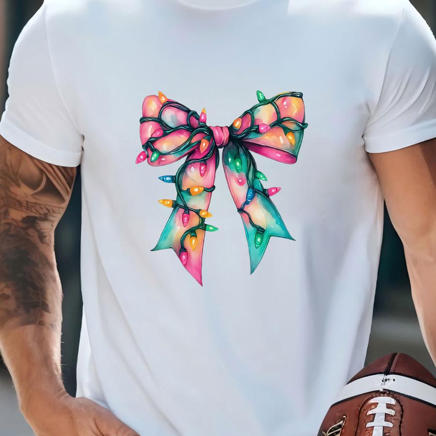Christmas Light Bow , Women's Holiday Shirt, Long Sve And Sweatshirt, Christmas Bow Shirt, Gift For Christmas T-shirt