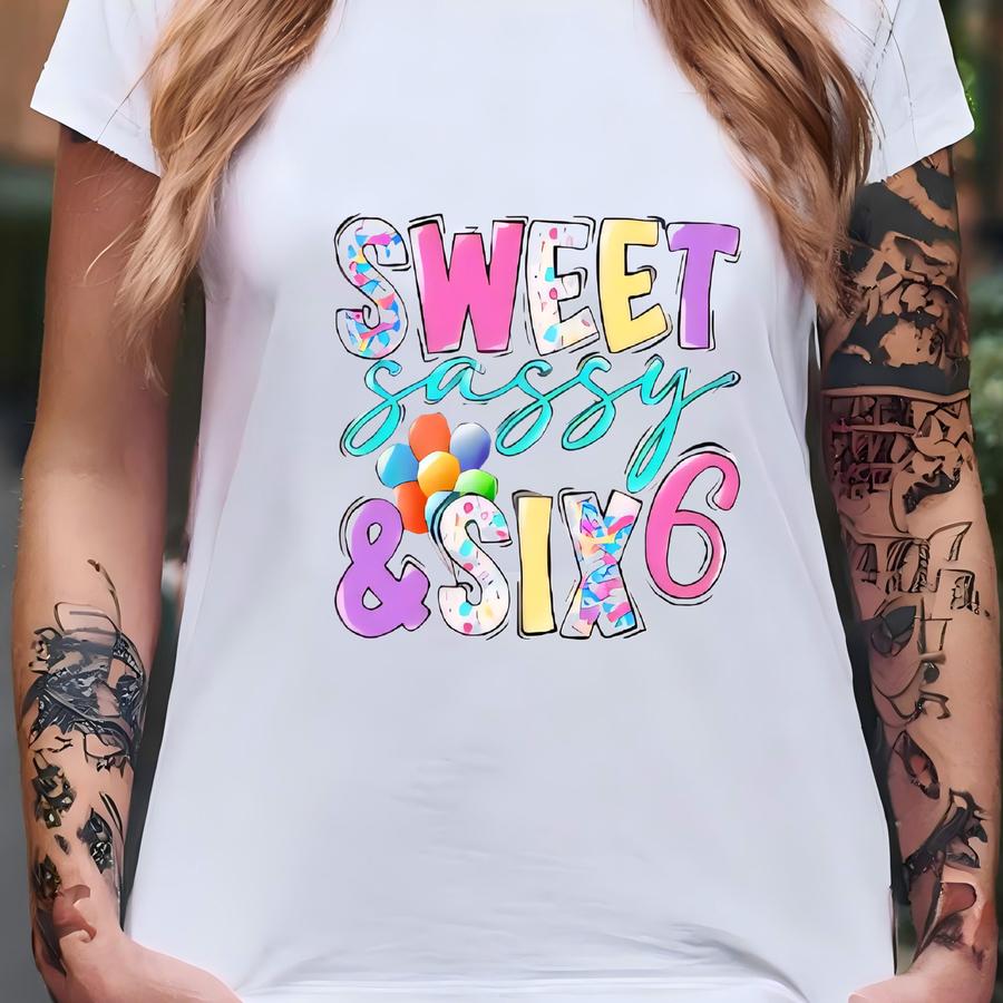 Sweet Sassy And Six Girl's Birthday Shirt 6 Years Old Outfit Photo Prop Gift Sixth Hearts Gift My 6th Birthday Girl Shirt, I'm 6 Tee T-shirt