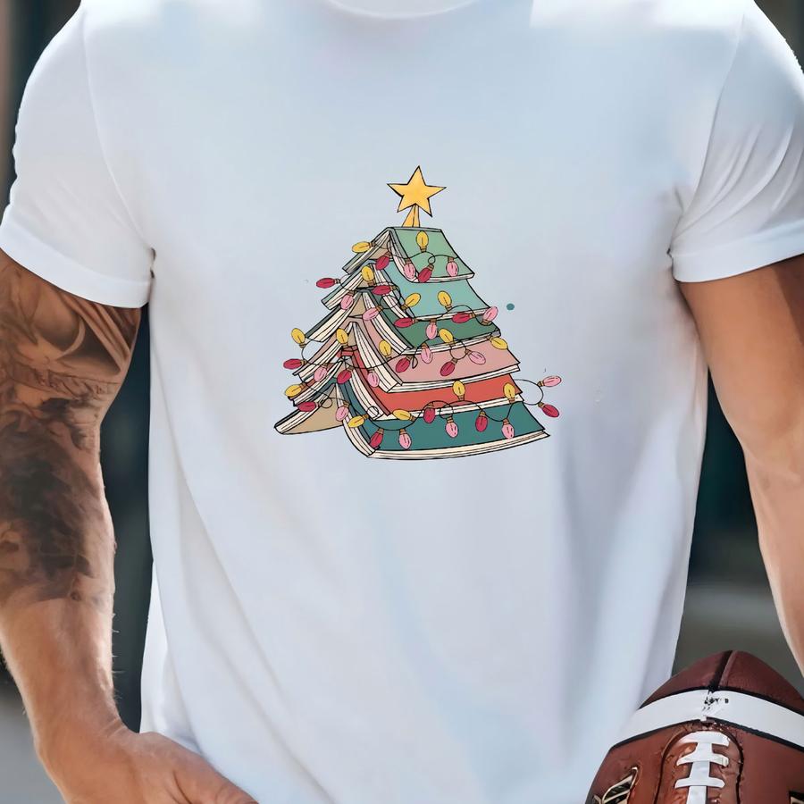 Book Christmas Tree Shirt: Book Lover Librarian Gift T-shirt