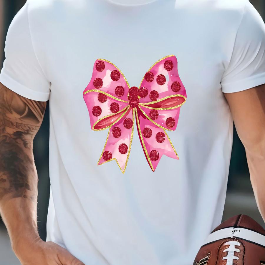 Christmas Bow Shirt: Pink Polka Dot Glitter Tee T-shirt