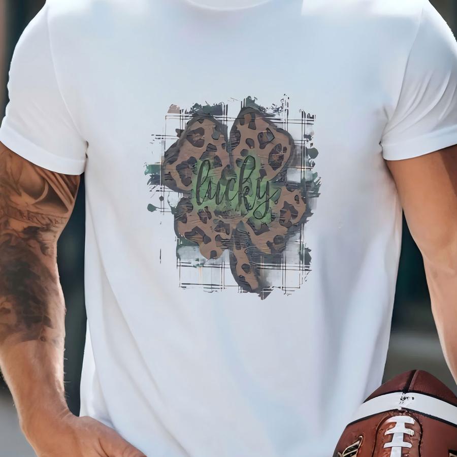 St. Patrick's Day Lucky Leopard Clover On Soft Bleached Tee T-shirt