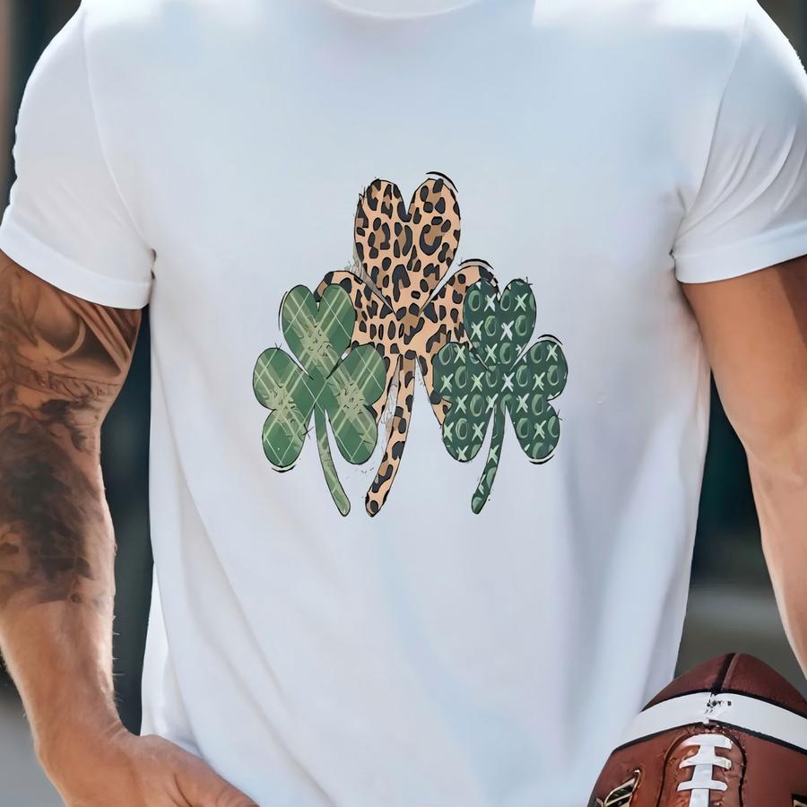 St. Patrick's Day 4 Leaf Clovers On Bleached Soft Tshirt T-shirt