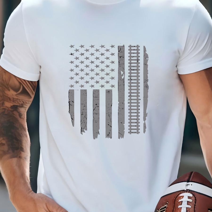 Train American Flag Usa Conductor Railroad Tracks Hoodie, Tank Top, Hoodie, Sweatshirt, Long Sve, Child Apparel Gift T-shirt