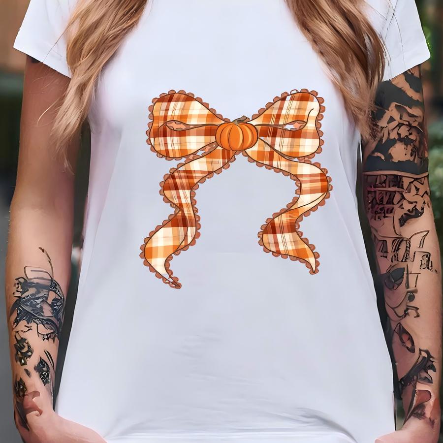 Checkered Bow With Pumpkin Fall Thanksgiving Hoodie T-shirt