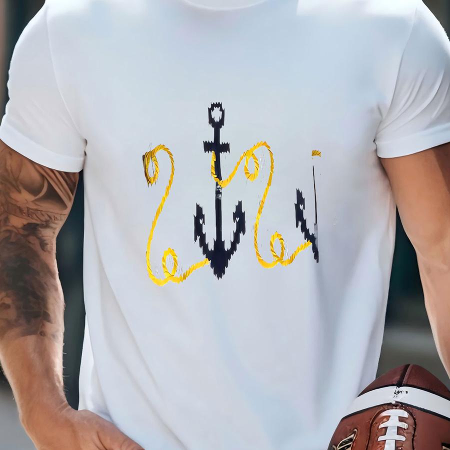 Vintage Sweater | Dior Woven Knit Nautical Beach Al Striped Anchor Boyfriend Top Sweater Navy Blue White Yellow | Size L T-shirt