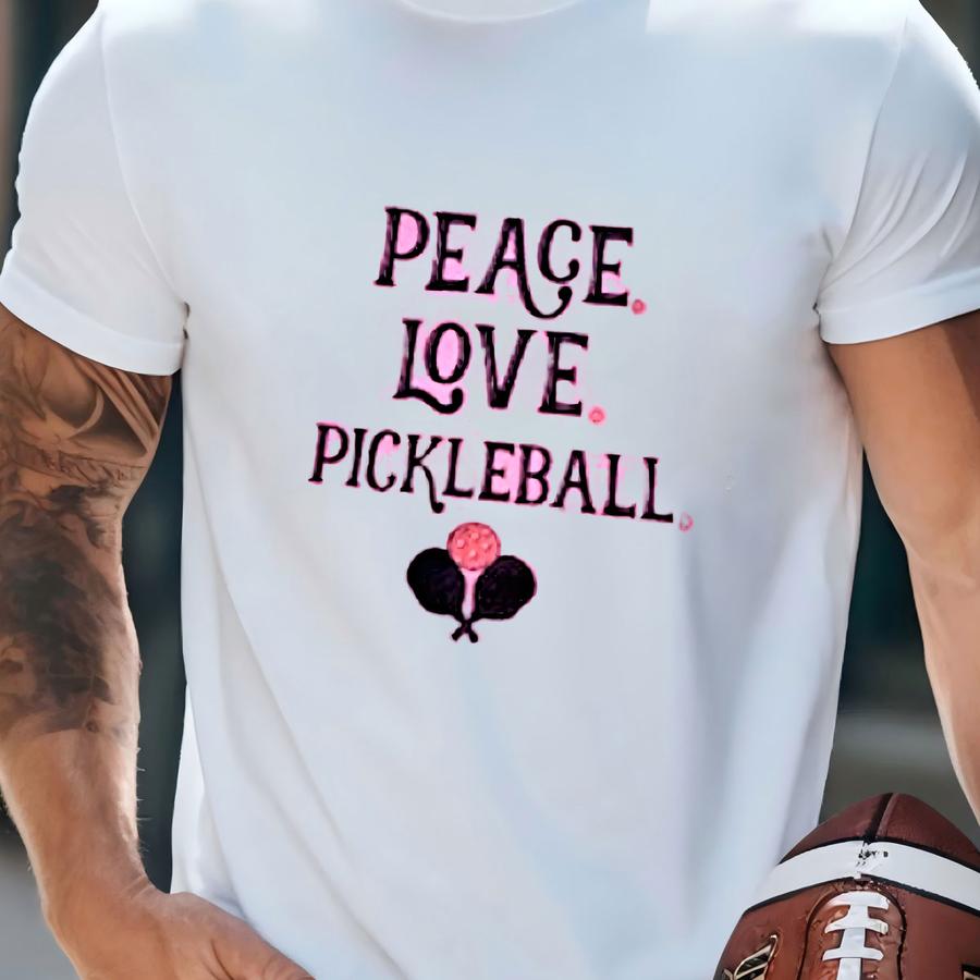 Cute Ladies Peace Love Pickleball Shirts Pickle Ball Shirts Custom Pickleball Gift Name On Back Of Shirt Option Personalized T-shirt