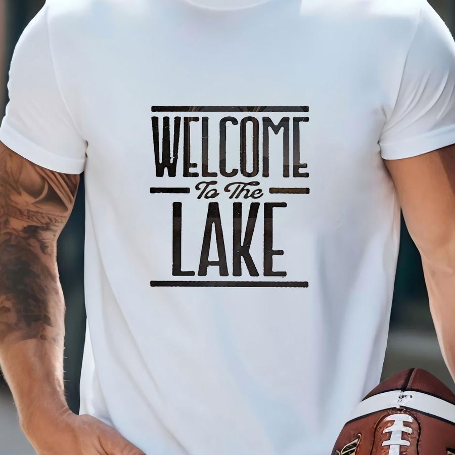 Welcome To The Lake Wall Art, Rustic Lake House Decor, Vintage Ink Press Style Typography Print For Waterfront Cabin, Cottage, Vacation Home T-shirt
