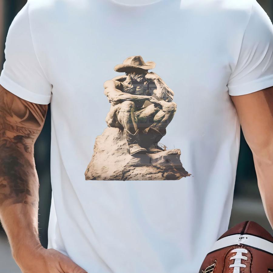 The Cowboy Thinker Sculpture Wall Art, Ranch House Bathroom Funny Toilet Poster, Guest Bathroom Western Decorating, Toilet Humor Wall Art T-shirt