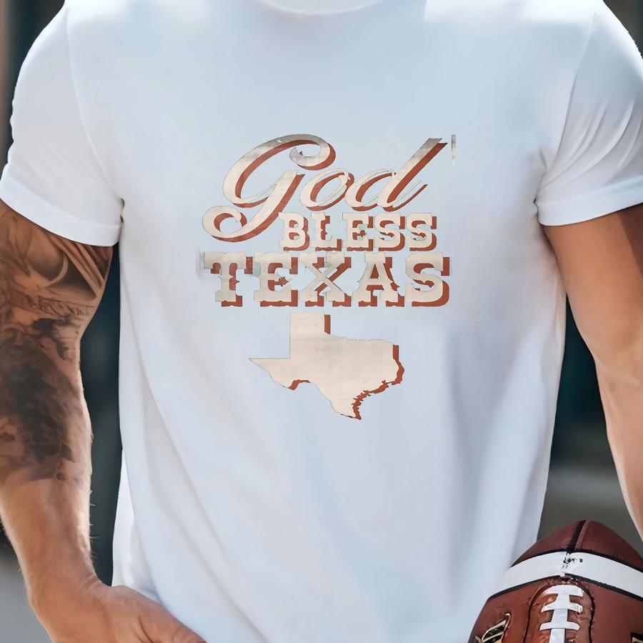 God Bless Texas Wall Art Print, Retro Texas Decor, Red White And Blue Texas Poster, Vintage Texas Lone Star State Art, Texas Home Decoration T-shirt
