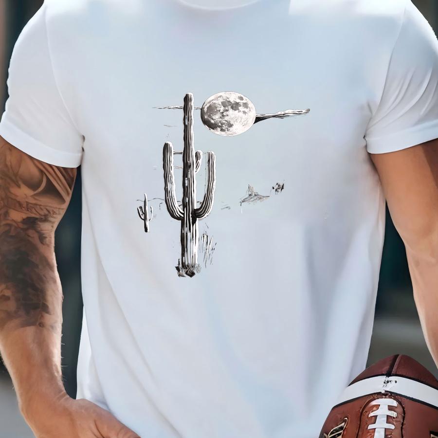 Black And White Saguaro Cactus Art Print | Retro Cactus Wall Art, Vintage Western Art, Southwest Desert Landscape Print, Cowboy Wall Art T-shirt