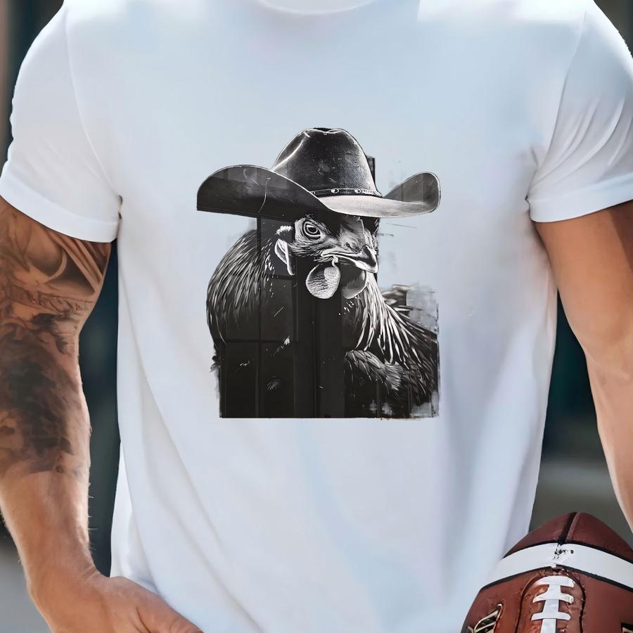 Rooster Art Print, Cute Chicken Black And White Modern Western Art Print, Large Western Living Decor, Ranch House Wall Art, Wild West Prints T-shirt