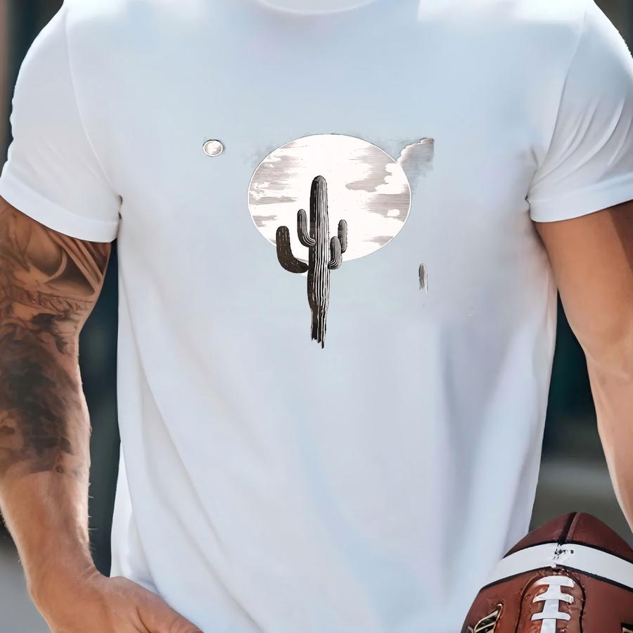 Saguaro Cactus Art Print | Retro Cactus Wall Art, Black And White Western Art, Surreal Southwest Desert Landscape Print, Large Cactus Decor T-shirt