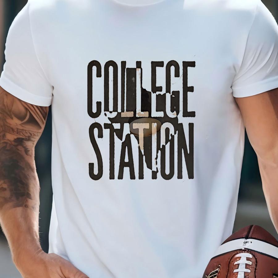 College Station Texas Vintage Ink Press Typography Art Print, Large Texas Wall Art, Texas Home Decor, Texas Aggie Print, Graduation Gift T-shirt