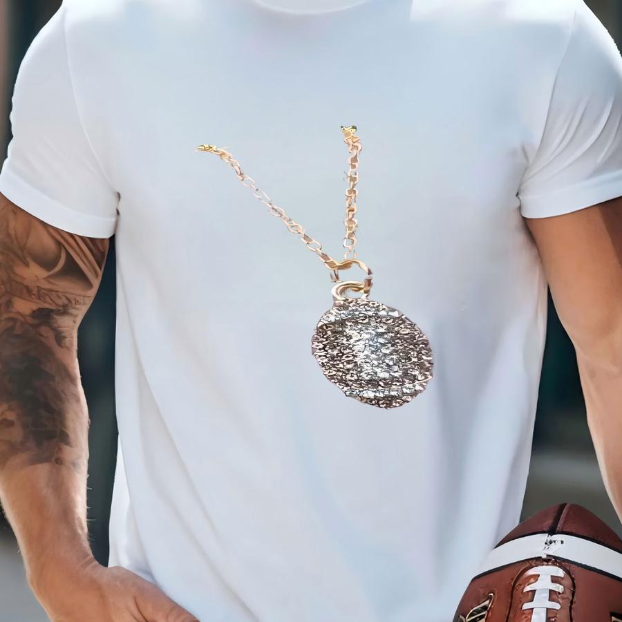 Rhinestone Football Charm Necklace Gold Gameday Game Day T-shirt