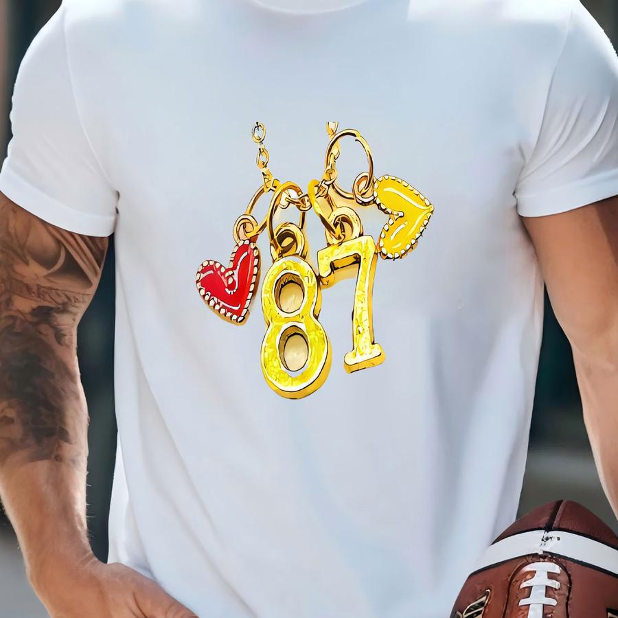 Gold 87 Travis Kelce Kansas City Charm Necklace Kc Football Necklace T-shirt