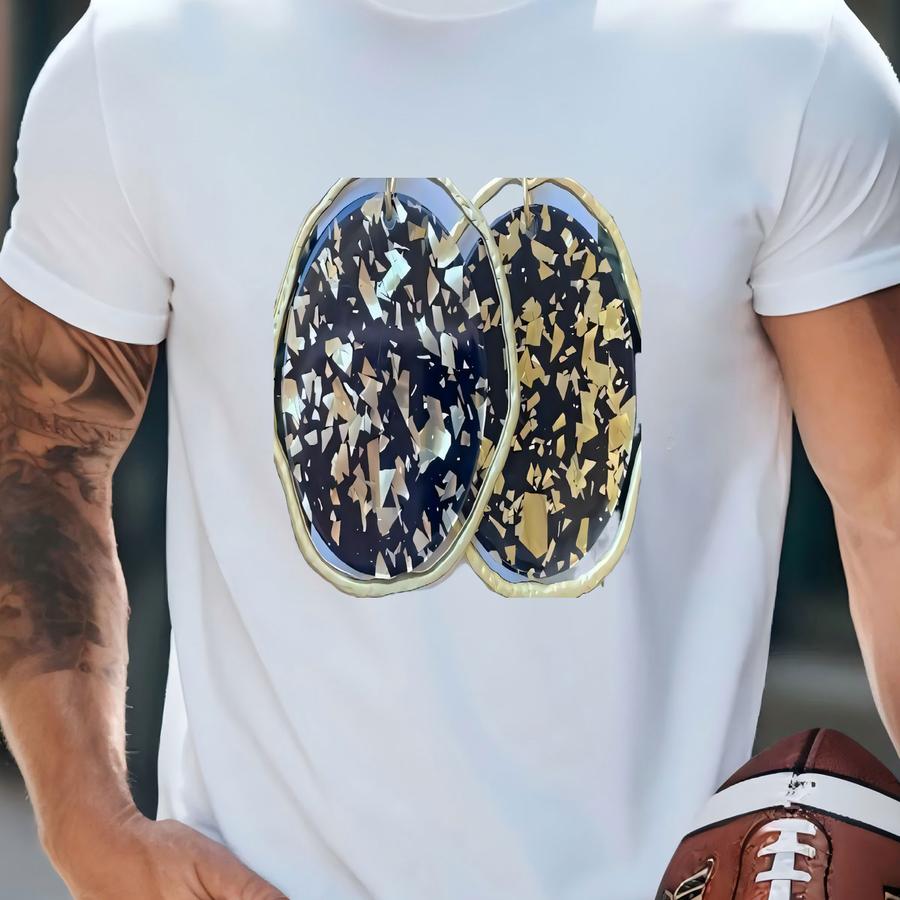 Gold Black Flake Chandelier Acrylic Disc Chandelier Earrings T-shirt