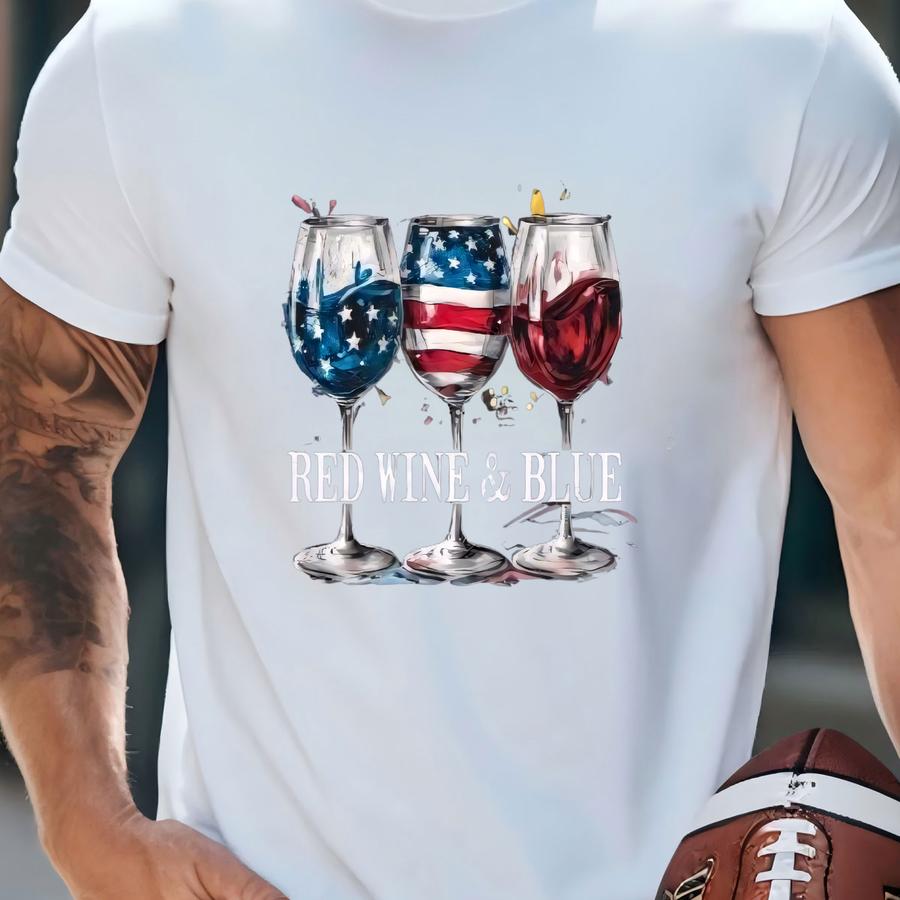 4th Of July Celebration Shirt, Red Wine Blue Shirt, Women's 4th Of July Outfit, Fourth Of July Party Shirt, Independence Day, Cool Patriotic T-shirt