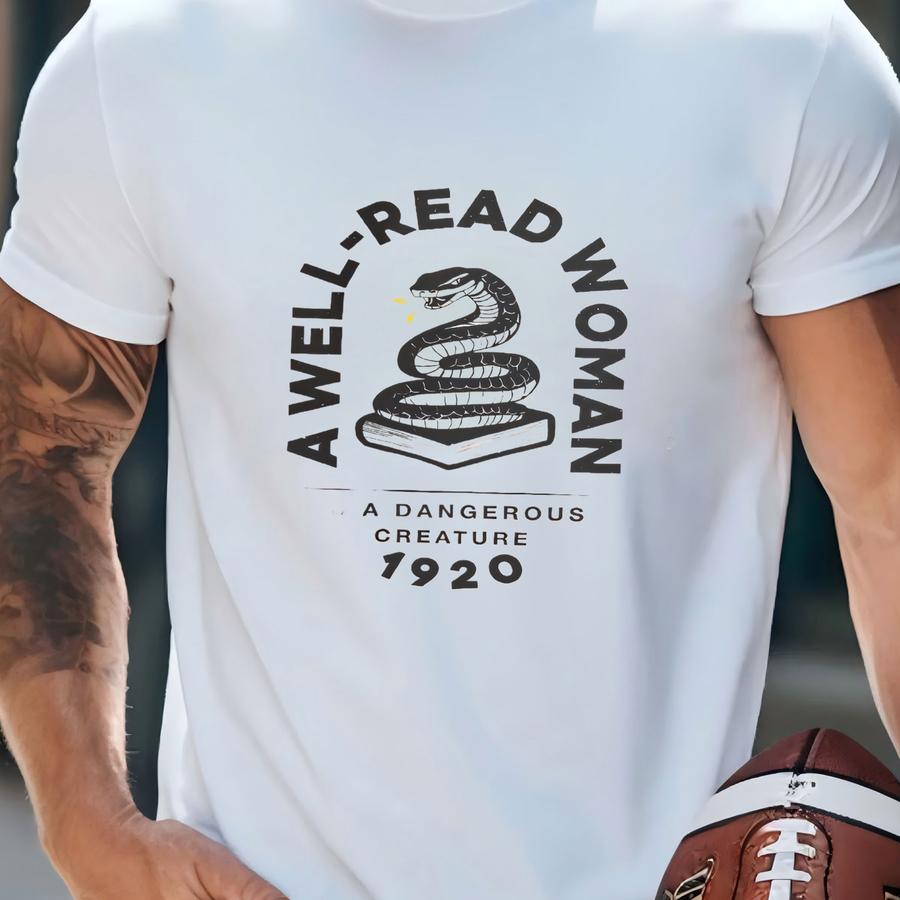 Well Read Woman Tote, Bookish Tote, Book Tee, Snake Librarian Tee, Reading Tee, Gift For Book Lover, Cotton Tote T-shirt