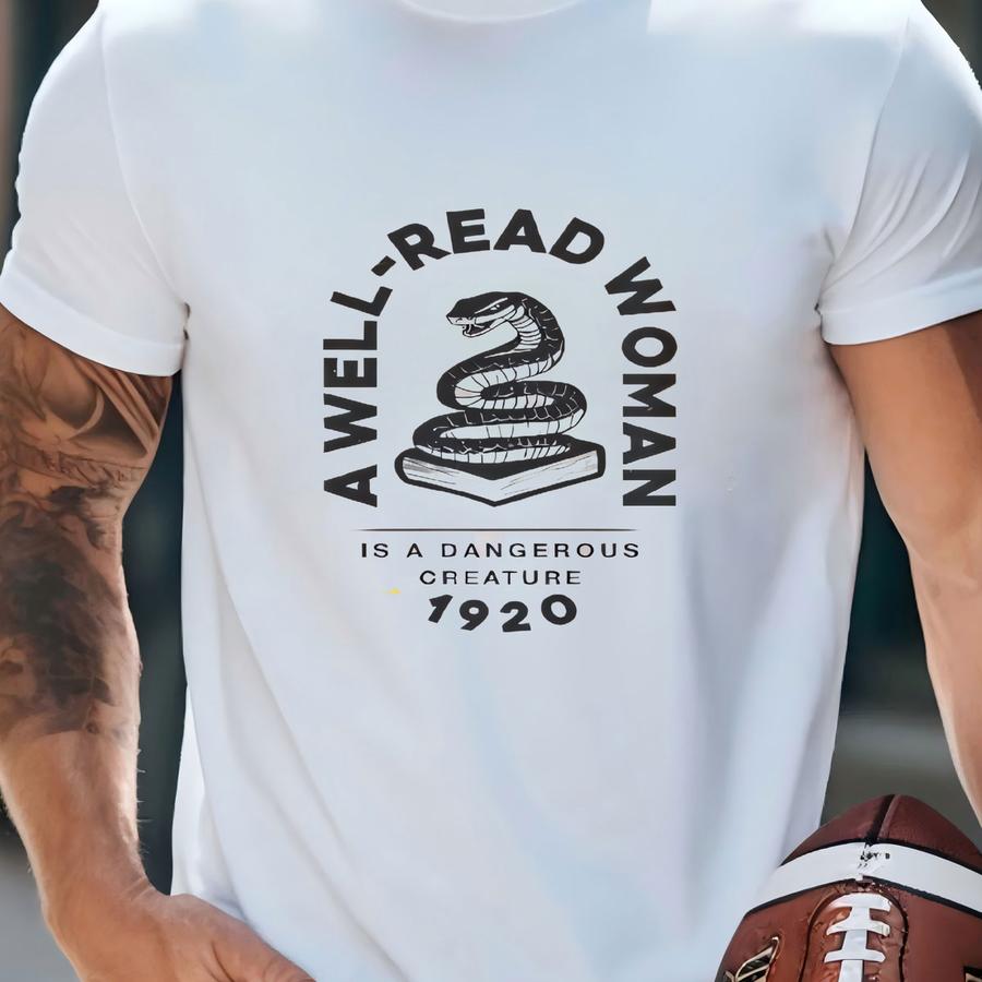 Woman Is A Dangerous Creature, Novel Fan Gift, Book Shirt, Bookish Sweater, Book Lover Gift, Snake Shirt, Well-read Woman T-shirt