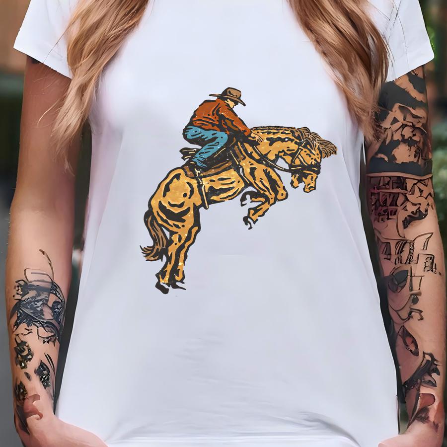 Cowboy Bucking Horse Rodeo Western Hoodie Hoodie Sweatshirt Long Sve Ranch Country Gift For Him Her Skuc 65 T-shirt