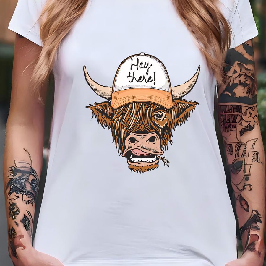 Funny Highland Cow Hoodie Hoodie Sweatshirt Long Sve Gift – Hay There Trucker Hat Farm Animal Tee Western Country Graphic Top Skuc 49 T-shirt
