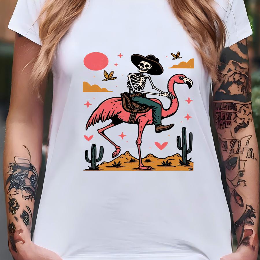 Funny Skeleton Cowboy Flamingo Hoodie, Retro Western Goth Shirt, Weird Desert Cowboy Hoodie, Sweatshirt, Long Sve Gift 57 T-shirt
