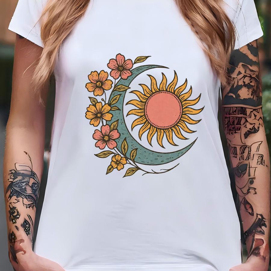 Boho Sun And Moon Floral Shirt, Retro Celestial Tee For Women, Spiritual Aesthetic Hoodie, Sweatshirt, Long Sve Gift 56 T-shirt