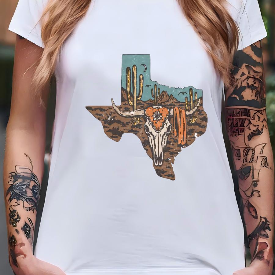 Texas Longhorn Skull Desert Shirt, Western Cowgirl Hoodie, Cactus Rodeo Tee, Rustic Graphic Hoodie, Sweatshirt, Long Sve Gift Sku3 53 T-shirt