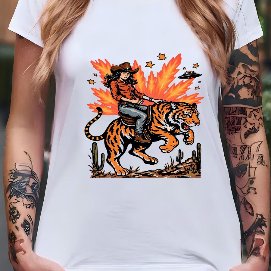 Cowgirl Riding Tiger Shirt – Western Rodeo Hoodie, Hoodie, Sweatshirt, Long Sve, Wild Desert Cowgirl Gift Sku3 47 T-shirt