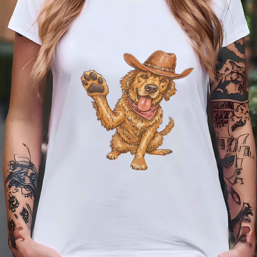 Cowboy Dog Shirt, Western Golden Retriever Hoodie, Cute Rodeo Pup Tee, Ranch Dog Gift, Hoodie, Sweatshirt, Long Sve, Gift Sku3 43 T-shirt