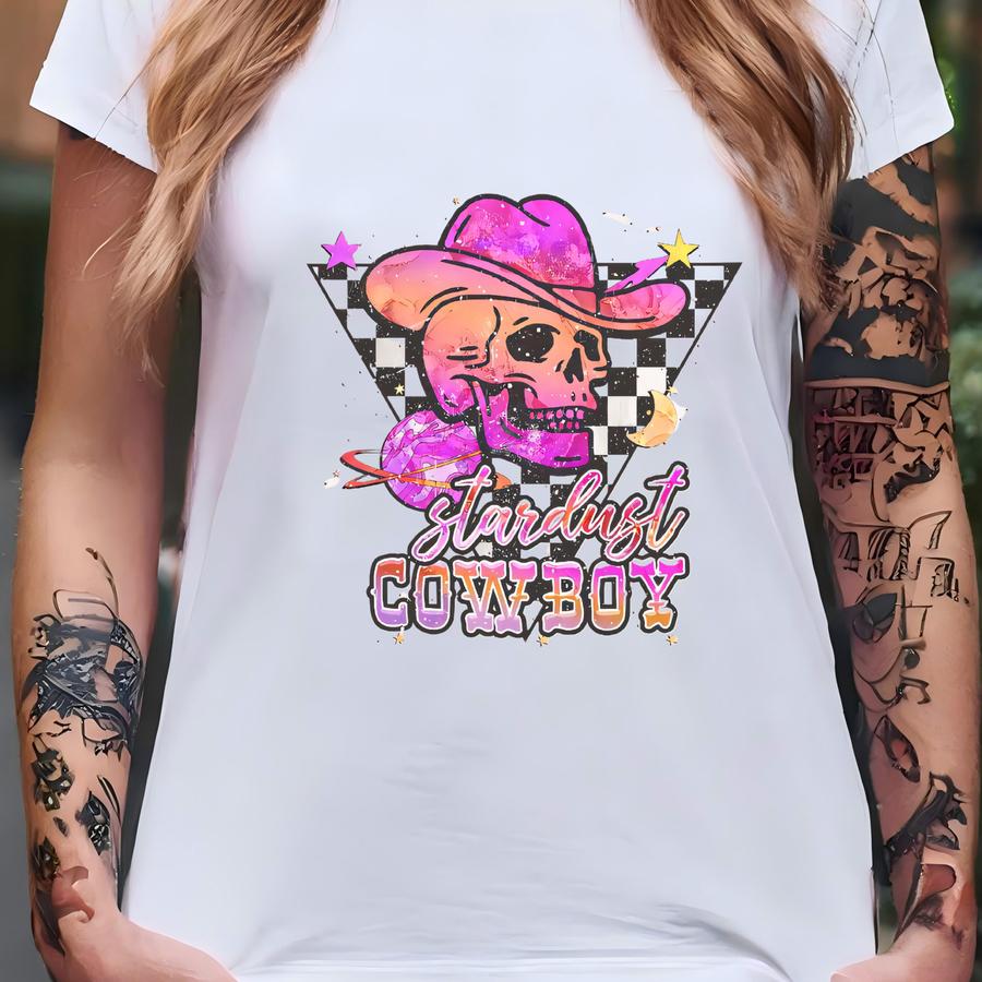 Stardust Cowboy Shirt Western Retro Skull Tee | Pink Cosmic Cowgirl Graphic Tee | Vintage Country Aesthetic Shirt | Skuc 17 T-shirt