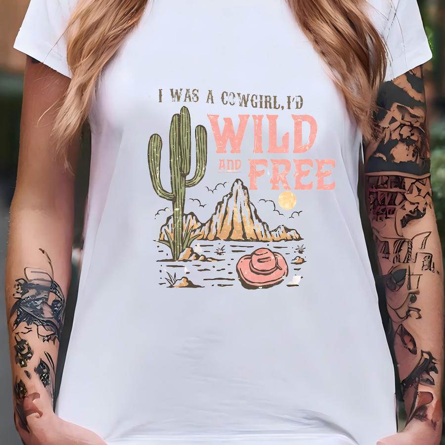 Wild And Free Cowgirl Shirt – Desert Cactus Country Hoodie, Hoodie, Sweatshirt, Long Sve, Retro Western Gift For Women Skuc 6 T-shirt