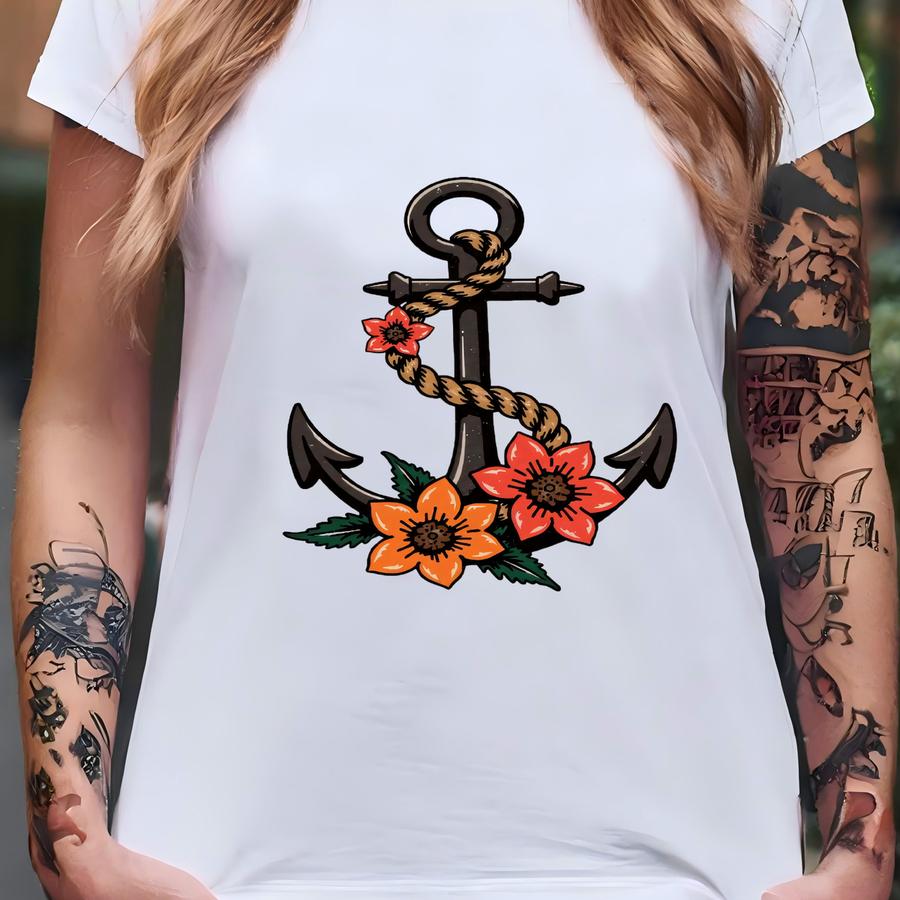 Anchor Floral Hoodie, Nautical Shirt Gift, Beach Hoodie, Tattoo Anchor Sweatshirt, Long Sve Top Sku3 13 T-shirt