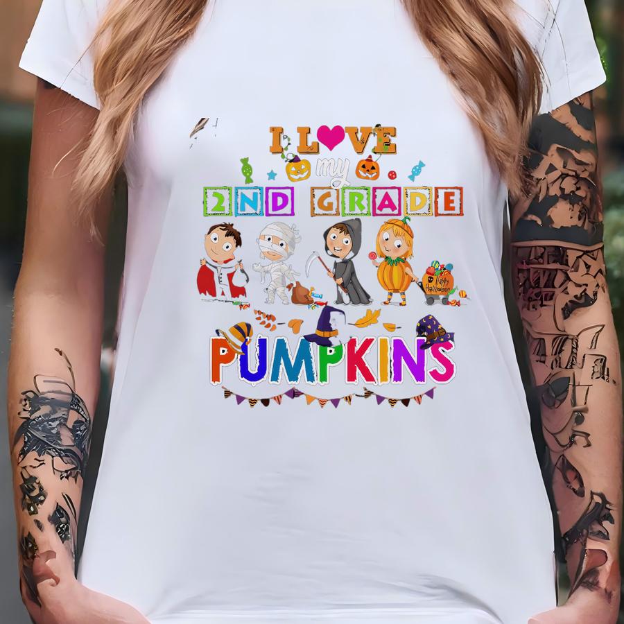 Second Grade Teacher Halloween Shirt, Long Sve, Sweatshirt, Tank Top, Hoodie, Gift, I Love My 2nd Grade Pumpkins T-shirt