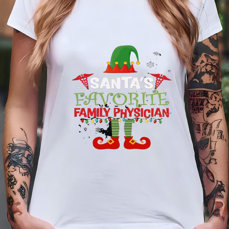 Family Physician Christmas Shirt, Long Sve, Sweatshirt, Tank Top, Hoodie, Gift, Santa Favorite Family Medicine Doctor, Nurse T-shirt