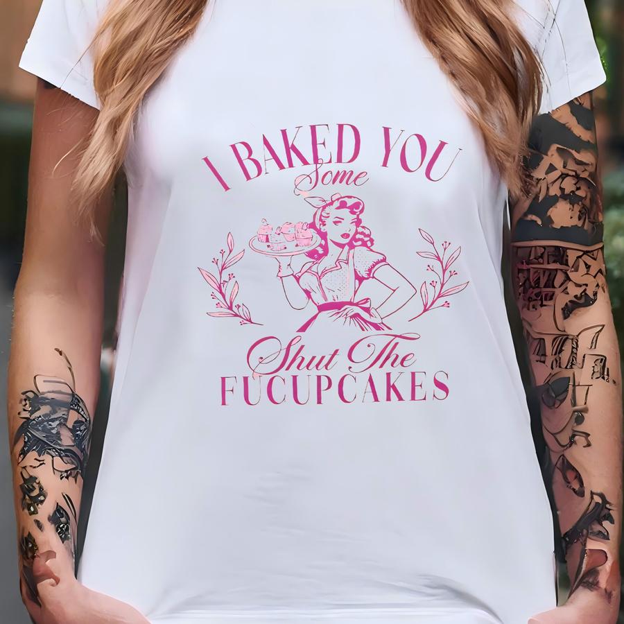 Funny Southern Graphic Tee, I Baked You Some Shut The Fucupcakes Shirt, Sassy Retro Baking Humor Tee, Women's Sarcastic Hoodie T-shirt