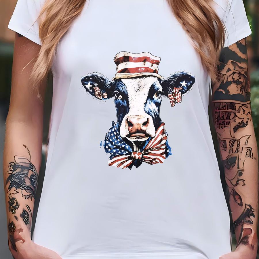 Western America Highland Cow Shirt, American Flag Shirt, Independence Tshirt, Memorial Day Shirt, Flag Shirt, Fourth Of July Shirt T-shirt