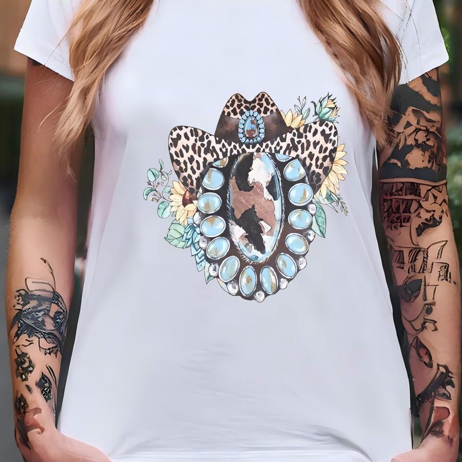 Turquoise Gemstone Shirt, Leopard Cowboy Hat Shirt, Country Music Shirt, Country Tee, Western Tee, Southern Hoodie T-shirt
