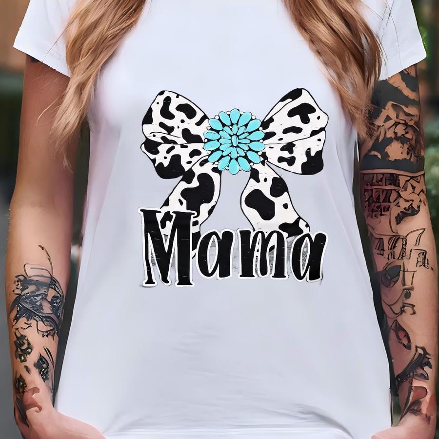 Cow Print Bow Mama Shirt, Gemstone Bow Shirt, Western Mama Shirt, Expecting Mom Gift, New Mom Gift Idea, Cow Print Shirt, Motherhood Shirt T-shirt