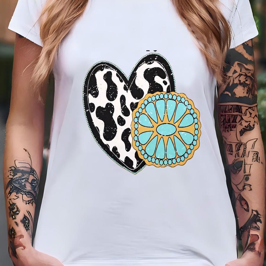 Cowhide Turquoise Shirt, Rodeo Shirt For Women, Cowgirl Shirt, Cow Gifts, Cowhide Texas Shirt, Country Music Shirt, Moving Away Gift T-shirt